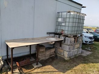 Zase jsme trochu vylepšili podmínky na letišti před plánovaným víkendem s mládeží. Pro Míru jsme postavili kuchyňskou linku se dřezem, aby měl více pohodlí při vaření. Pro ochlazení v horkých letních dnech jsme nainstalovali sprchu. Drobných úprav se dočkal i nový nábytek od Jirky.